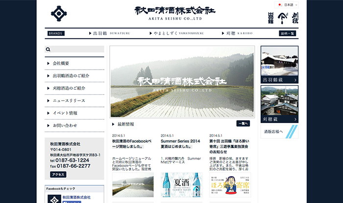 English version site of AKITA SEISHU CO.,LTD. opened on Mya 10th , 2014. If you see Japanese site, please click the “ English ” button above to see English pages .